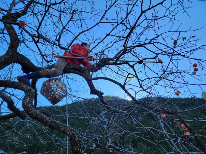渋柿の収穫は一つひとつ手作業で、時間も体力も必要な上、木に登るのは危険を伴う作業となります。