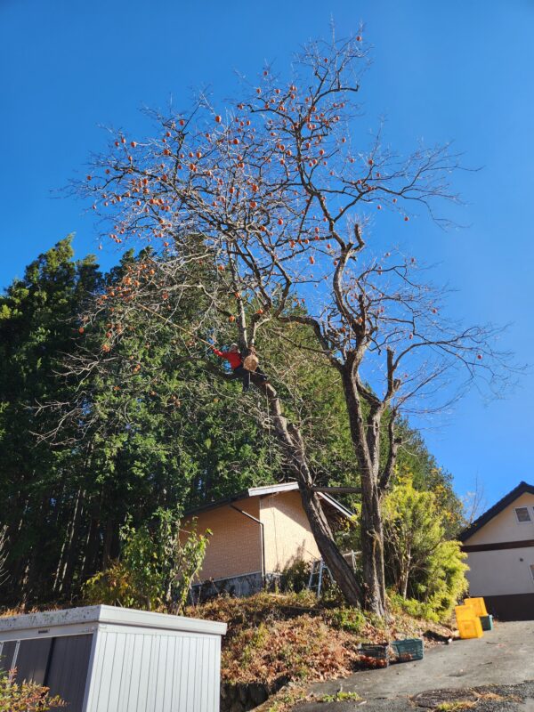 渋柿の収穫は一つひとつ手作業で、時間も体力も必要な上、木に登るのは危険を伴う作業となります。